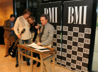 BMI’s Jody Williams congratulates co-writer Jon Mabe on the success of “The Climb,” which marks the first chart-topper for the songplugger-turned-songwriter. Pictured at “The Climb” #1 party at BMI on October 14 are BMI’s Bradley Collins, BMI co-writer Jon Mabe, co-writer Jessi Alexander, and BMI’s Jody Williams. View Photo