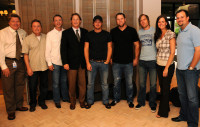 Houston County, a recent addition to the Stroudavarious record label, recently played an acoustic set for BMI’s Nashville staffers. The trio’s performance included “I Can’t Make It Rain,” the first single off their self-titled debut. Pictured are BMI’s David Preston and Jody Wililams; Good Ole Delta Boy Music’s Jimmy Metts; BMI’s Clay Bradley; Houston County’s Zack Hooper, John Milldrum, and… View Photo