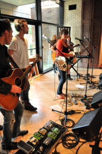 Ben and Chad Truman, sons of Diamond Rio’s keyboardist Dan Truman, brought some soulful jazz-pop to BMI’s Nashville office on September 8. The duo, aptly named Truman, recently opened for Kelly Clarkson and is currently touring colleges around the nation. Pictured are BMI’s Thomas Cain and Clay Bradley, Wendee Truman, BMI’s Jody Williams, Truman’s Ben and Chad Truman, and Diamond… View Photo