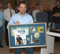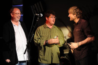BMI’s Charlie Feldman and Mark Mason greet C3’s Charlie Walker (center) at Lollapalooza. View Photo