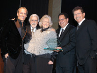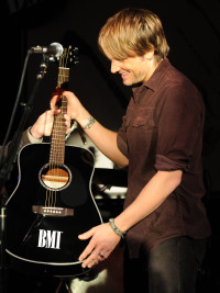 Pictured at the BMI Lollapalooza stage are BMI’s Bradley Collins and Charlie Feldman; Esser and BMI’s Samantha Cox. View Photo