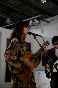 Sam Evian and Hannah Cohen perform at the Spotify x BMI Songwriter Mixer at Taglialatella Gallery in New York, NY on November 4, 2025. View Photo