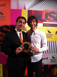 BMI’s Brandon Bakshi helps Gotye celebrate his Song of the Year win for “Somebody That I Used to Know” at the 2012 APRA Awards. View Photo