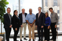 Representatives of the United Kingdom’s performing rights society, PRS for Music, recently paid a visit to BMI’s New York office to meet with members of the Company’s international team. Pictured L-R are: Sean Collins, International Manager, PRS; BMI’s Ann Sweeney; Liam Donnelly, Head of International, PRS; and BMI’s Jose Gonzalez, Mike Steinberg, Consuelo Sayago and David Levin. View Photo