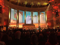Composer and honoree Alexandre Desplat conducts “The Secret Life of Pets” with the ORF Radio-Symphonie Orchester Wien – RSO Wien as the backdrop displays a scene from the film adding to the delight of the audience. View Photo