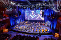 The lights of the renowned Wiener Konzerthaus (Vienna Concert Hall) mesmerize the audience as composer and honoree Alexandre Desplat expertly conducts “The Secret Life of Pets” with the ORF Radio-Symphonie Orchester Wien – RSO Wien. View Photo