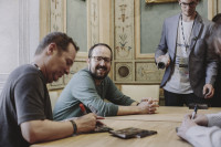 BMI composer Cliff Martinez signs autographs with Joseph Trapanese after giving their master class. View Photo