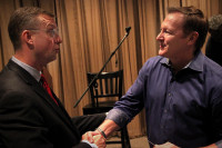 Rep. Doug Collins greets BMI songwriter Tim Nichols after speaking about the Songwriter Equity Act. View Photo