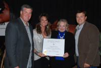 BMI also surprised hit-maker Bridgette Tatum during the SCBA STAR Awards with a Million Air Award, recognizing the more than one million performances of her song “She’s Country,” recorded by Jason Aldean. Pictured are Mike Hayes, President/GM, WYFF & SCBA Past President; Tatum; Jane Pigg, Pres/Owner WCRE-AM/FM & SCBA President; and BMI’s Mason Hunter. View Photo