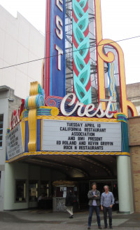 Kevin Griffin and Ed Roland pose in front of the Crest Theatre before their performance during the California Restaurants “Rock N’ Restaurants.” View Photo