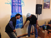 The Blues Foundation Hall of Fame groundbreaking was held on Friday, May 9, after the BMA’s, and legends Bobby Rush and Eddie Shaw did the honors of breaking one of the walls. View Photo