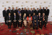 BMI executives and Board members gather for a photo with NAB honoree Babyface (back row; 6th from left), and songwriter guests Randy Owen (front row; 3rd from left), Makeba Riddick (front row; 4th from right), Emily Kinney (front row; 4th from left), and Claude Kelly (front row; 3rd from right) at the 66th Annual BMI Board of Directors Dinner, held… View Photo