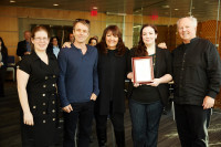Pictured (L–R): Berklee Film Scoring Assistant Chair Alison Plante; Harry Gregson-Williams; BMI's Doreen Ringer-Ross; BMI Film Scoring Scholarship recipient Emily Joseph and Berklee Film Scoring Chair George S. Clinton. View Photo