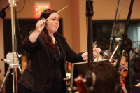 Pictured: BMI Film Scoring Scholarship recipient Emily Joseph conducting a score. View Photo