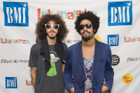 888 poses for a photo at the BMI Stage during Lollapalooza on August 6, 2017, in Chicago, IL. View Photo