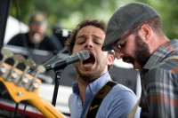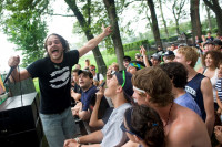 Son of a Bad Man’s Shawn Fisher leads a howling sing-along at BMI’s Lollapalooza stage August 8 in Chicago. View Photo