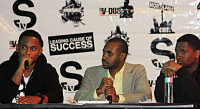 BMI’s Byron Wright speaks during the Chi City Record Pool in Chicago, IL, as Brandon "Booz" Sands and Sony/ATV’s Walter Jones listen. View Photo
