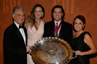 (L - R) BMI President Del Bryant, Elena Vives, 2014 BMI President's Award recipient Carlos Vives and BMI Vice President, Latin Writer/Publisher Relations Los Angeles, Delia Orjuela pose during the 21st annual BMI Latin Awards at the Bellagio on March 11, 2014 in Las Vegas, Nevada. View Photo