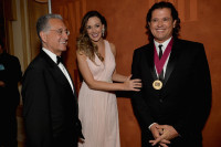 (L - R) BMI President Del Bryant, Elena Vives and 2014 BMI President's Award recipient Carlos Vives pose during the 21st annual BMI Latin Awards at the Bellagio on March 11, 2014 in Las Vegas, Nevada. View Photo