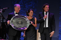 (L - R) BMI President Del Bryant, BMI Vice President, Latin Writer/Publisher Relations Los Angeles, Delia Orjuela and 2014 BMI President's Award reciepient Carlos Vives onstage during the 21st annual BMI Latin Awards at the Bellagio on March 11, 2014 in Las Vegas, Nevada. View Photo