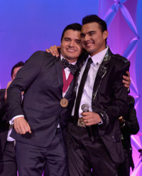 BMI Icon Award recipients Banda El Recodo de Cruz Lizarraga and Songwriter of the Year Award winner Horacio Palencia onstage during the 20th annual BMI Latin Awards at the Bellagio on March 21, 2013 in Las Vegas, Nevada View Photo
