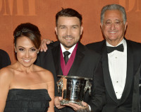 (L-R) BMI Senior Vice President, Repertoire & Licensing Michael O'Neill, singer/songwriter Prince Royce, and BMI Vice President, Latin Writer/Publisher Relations Los Angeles, Delia Orjuela arrive at the 20th annual BMI Latin Awards at the Bellagio on March 21, 2013 in Las Vegas, Nevada. View Photo