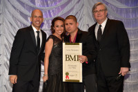 Porfirio Piña, BMI Senior Director, Writer/Publisher Relations, Latin; Delia Orjuela, BMI Vice President Writer/Publisher Relations, Latin; BMI Latin Award winner Larry Hernandez and BMI Senior Vice President, Writer/Publisher Relations Phil Graham pose onstage during the 19th Annual BMI Latin Music Awards at the Encore Wynn Las Vegas on March 30, 2012 in Las Vegas, Nevada. View Photo