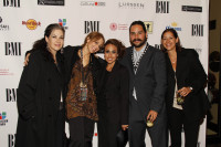 BMI’s Delia Orjuela, Elsten Torres and Sebastian Krys pose for a photo at Los Producers Charity Show. View Photo