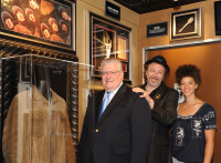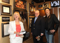 Representative Marsha Blackburn, BMI Senior Vice President Fred Cannon and Hard Rock Historian Jeff Nolan view one of the exhibits at the Hard Rock Capitol Hill Event. View Photo