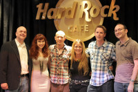 Posing after the show are Hard Rock Manager Jordan Rosenblatt, Margot MacDonald, Hungry for Music Executive Director Jeff Campbell and BMI Sr. VP Government Relations Fred Cannon, who originated the showcase series. View Photo
