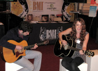 Margot MacDonald performs in the Copyright Alliance "Coffee Shop," accompanied by Jonathan Ifergan of Chicago band Color Radio. The Coffee Shop was part of the Copyright Alliance Expo held recently in D.C. View Photo