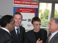 Legendary Motown songwriter and producer Lamont Dozier; Director General of CISAC Eric Baptiste; pop icon Robin Gibb of the Bee Gees, who is also President of CISAC; and BMI President & CEO Del Bryant kick off the Second World Copyright Summit at the Ronald Reagan Center in Washington, D.C. on Monday, June 8, 2009. View Photo