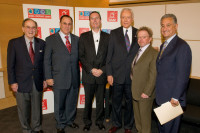 ASCAP’s Hal David and John LoFrumento, CISAC Director General Eric Baptiste, Senator Orrin G. Hatch (R-UT), ASCAP President & Chairman of the Board Paul Williams, and BMI President & CEO Del Bryant pause for a photo as Senator Hatch arrives at the World Copyright Summit at the Ronald Reagan Center in Washington, D.C. on Tuesday, June 9. View Photo