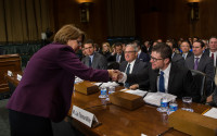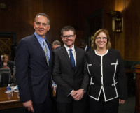 BMI President and CEO Mike O’Neill, BMI songwriter and NSAI President Lee Thomas Miller and BMI Senior Vice President, Global Policy Ann Sweeney at today’s Senate hearing View Photo