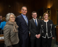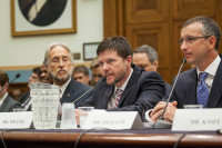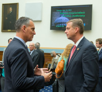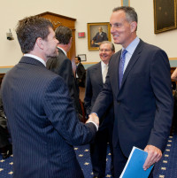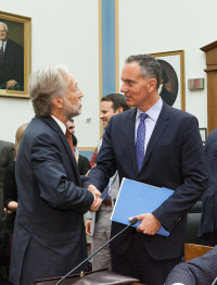 BMI’s Michael O’Neill (left) caught up with Congressman Doug Collins (R-GA) (right) following the hearing. Congressman Collins introduced the Songwriter Equity Act (H.R. 4079) on February 25, 2014, which would change copyright law to remove evidentiary barriers that are standing in the way of fair royalty payments to songwriters. View Photo