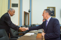 BMI President and CEO Mike O’Neill greets Congressman John Conyers, Jr., of Michigan at the June 10 Congressional hearing on music licensing. Congressman Conyers visited BMI’s New York office last year to speak with executives about the rights of songwriters and publishers. View Photo