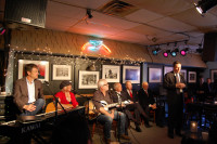 NSAI Executive Director Bart Herbison (far right) introduces Senator Lamar Alexander before his address to the media. Pictured L-R are: BMI songwriter Tom Douglas, Roxie Dean, Rivers Rutherford, U.S. Senators Bob Corker, Lamar Alexander and Orrin Hatch, and Herbison. View Photo