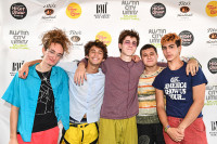 The band takes a group pic before their performance on the BMI Stage at ACL. View Photo