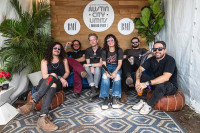 Austin band Darkbird relaxing in the BMI Lounge at ACL Fest, Weekend One 2022. View Photo