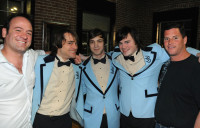 The Dozen Dimes bring class and style to round 3 of the Road to Bonnaroo competition on April 19. Pictured are Mercy Lounge’s Drew Mischke; The Dozen Dimes’ Nathan Hansen, Austin Edwards and Matthew Bell; and BMI’s Mark Mason. View Photo