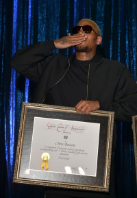 Recording artist Chris Brown accepts a BMI Special Citation of Achievement recognizing over 1 million broadcast performances of his song ‘Forever’ at the 2014 BMI R&B/Hip-Hop Awards at the Pantages Theatre on August 22, 2014 in Hollywood, California. View Photo