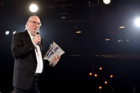 2013: Dean Dillon shows his appreciation to the audience while accepting his BMI Icon Award at the 2013 BMI Country Awards. View Photo