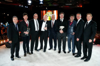 (L-R) BMI Vice President, Writer/Publisher Relations, Jody Williams, Song of the Year award winner Ketch Secor, Sony/ATV's Danny Strick, Sony/ATV's Troy Tomlinson, Sony/ATV's Martin Bandier, BMI Icon honoree Vince Gill, Songwriter of the Year award winner Rhett Akins, BMI President and CEO Mike O'Neill, and BMI Assistant Vice President, Writer/Publisher Relations Clay Bradley attend the BMI 2014 Country Awards at… View Photo