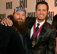 Duck Dynasty's Willie Robertson and Luke Bryan pause for a photo at the 2013 BMI Country Awards, staged November 5 at the organization’s Music Row offices. View Photo