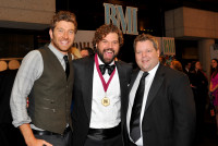 Brett Eldredge, Dallas Davidson, and BMI’s Bradley Collins arrive on the red carpet at the 2013 BMI Country Awards, held November 5 in Nashville. View Photo