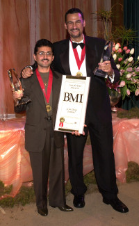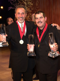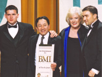 Banda El Recodo members Joel and Alfonso Lizarraga(far left and far right) onstage with Frances Preston at the 2000 BMI Latin Awards. View Photo