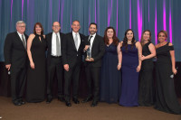 BMI Senior Vice President, Writer/Publisher Relations Phillip R. Graham (L), BMI President and Chief Executive Officer Michael O’Neill (4th from L) and BMI Vice President, Writer/Publisher Relations, Latin Music, Los Angeles, Delia Orjuela (R) pose with representatives of Sony/ATV Music Publishing, recipients of the BMI Latin Publisher of the Year, onstage during the 24th Annual BMI Latin Awards at the… View Photo