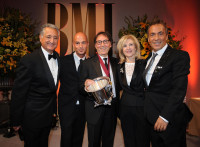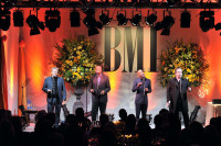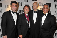 Brandon Bakshi, Executive Director, Writer/Publisher Relations, Europe & Asia; 2010 BMI London Icon Don Black, OBE; Sir George Martin, CBE; and BMI President & CEO Del Bryant at the BMI London Music Awards at the Dorchester Hotel in London on Tuesday, Oct. 5, 2010. View Photo