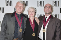 Mike O'Neill BMI's President & CEO with Sean Douglas and Michael Keaton at the 2016 BMI Awards held at the Dorchester Hotel, London View Photo
