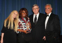 Vice President and General Manager, Writer/Publisher Relations, Los Angeles Barbara Cane, BMI Pop Award winner Ester Dean, Senior Vice President, Writer/Publisher Relations Phil Graham and BMI President and CEO Del Bryant pose onstage during the 60th annual BMI Pop Awards at the Beverly Wilshire Four Seasons Hotel on May 15, 2012 in Beverly Hills, California. View Photo